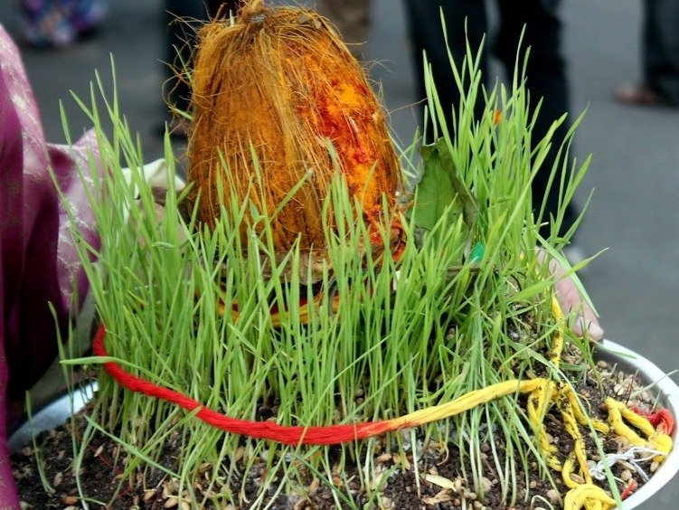 महाराष्ट्रात देशावर घट बसवण्याची पध्दत आहे. काही ठिकाणी रुजवण घातलं जात. ती कसे घातले जाते ते पाहूयात. घट बसवणे म्हणजे रुजवण घालण्या आधी घरातल्या देवांची यथासांग पूजा केली जाते. ते करताना घरातल्या देवांना पंचामृताने अभिषेक करुन पुसून प्रत्येक देव खायच्या दोन पानांवर ठेवले जातात याला आसन देणं म्हणतात. नंतर त्यांची पूजा केली जाते. नवरात्रात देवांना हलवता येत नाहीत. हे झाल्यावर एका टोपलीमध्ये पत्रावळीत थोडी ओली काळी माती घालून त्यात मूग, चवळी, मटकी, मका, कुळीथ, नाचणी, हरभरा, करडई, बाजरी, ज्वारी, भात, जव यापैकी कोणतीही नऊ धान्य मिसळावी. यालाच रुजवण म्हणतात. एका मातीच्या घटात पाणी भरुन सव्वा रुपया व सुपारी घालून त्यावर खायची पाच पाने ठेऊन नारळ ठेवला जातो. त्या नारळाला काही जणी डोळे, कान, नाक, तोंड लावून सजवतात. पहिल्या दिवशी खायच्या पानांची माळ या घटाला घातली जाते. नंतरच्या दिवशी हादग्याच्या फुलांची माळ वा झेंडूच्या फुलांची माळ या घटाला घातली जाते. तर अष्टमीला कडाकण्याची माळ लावली जाते. ती करण्यासाठी गुळाच्या पाण्यात कणिक व बेसन घालून त्या पिठाची वेणी, फणी, जोडवी, बांगड्या, खायचं पान, हाताचा शिक्का आणि धपाटी असे मिळून नऊ प्रकार केले जातात. त्यानंतर ते तळून त्यांची माळ केली जाते. या कडाकण्याच्या माळेला व हादग्याच्या फुलांच्या माळेला नवरात्रात खरा मान असतो. घटासमोर अखंड दिवा तेवत ठेवला जातो. घटावरील नारळ न हलवता दर दिवशी त्यात पाणी घातले जाते. तर रुजवणावर शिपंडले जाते. घरात घट बसवल्यानंतर नऊ दिवस उपवास ठेवला जातो. नऊव्या दिवशी देवीच्या घटाची पूजा करुन पुरण पोळ्यांचा नैवेद्य दाखवून घट हलवला जातो. घरातल्या देवांखालची खायची पानं व माळा विसर्जीत केल्या जातात. घरातले देव नविन वस्त्रांवर बसवून त्यांची पूजा केली जाते. तसेच कडाकण्याचा आणि घटावरील नारळाचा प्रसाद करुन वाटला जातो.