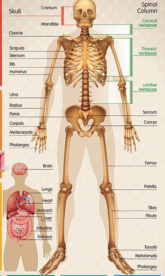 The skeletal system is composed of 206 bones joined and held together by connective tissues (Ligaments, Tendons , Fascia) to form a protective and supportive framework for the internal organs.